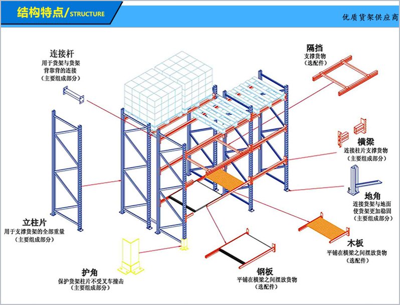產品特點:結構簡單、安全可靠,可任意調整組合;安裝、拆卸方便靈活,層載能力強、 抗沖擊性能強