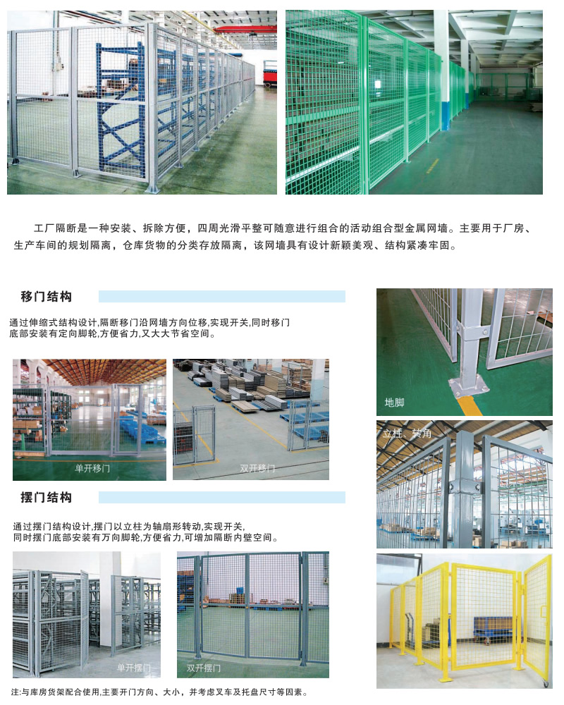 產品特點:用于廠房、生產車間的規劃隔離,設計新穎美觀,結構緊湊牢固,安裝和拆除十分方便
